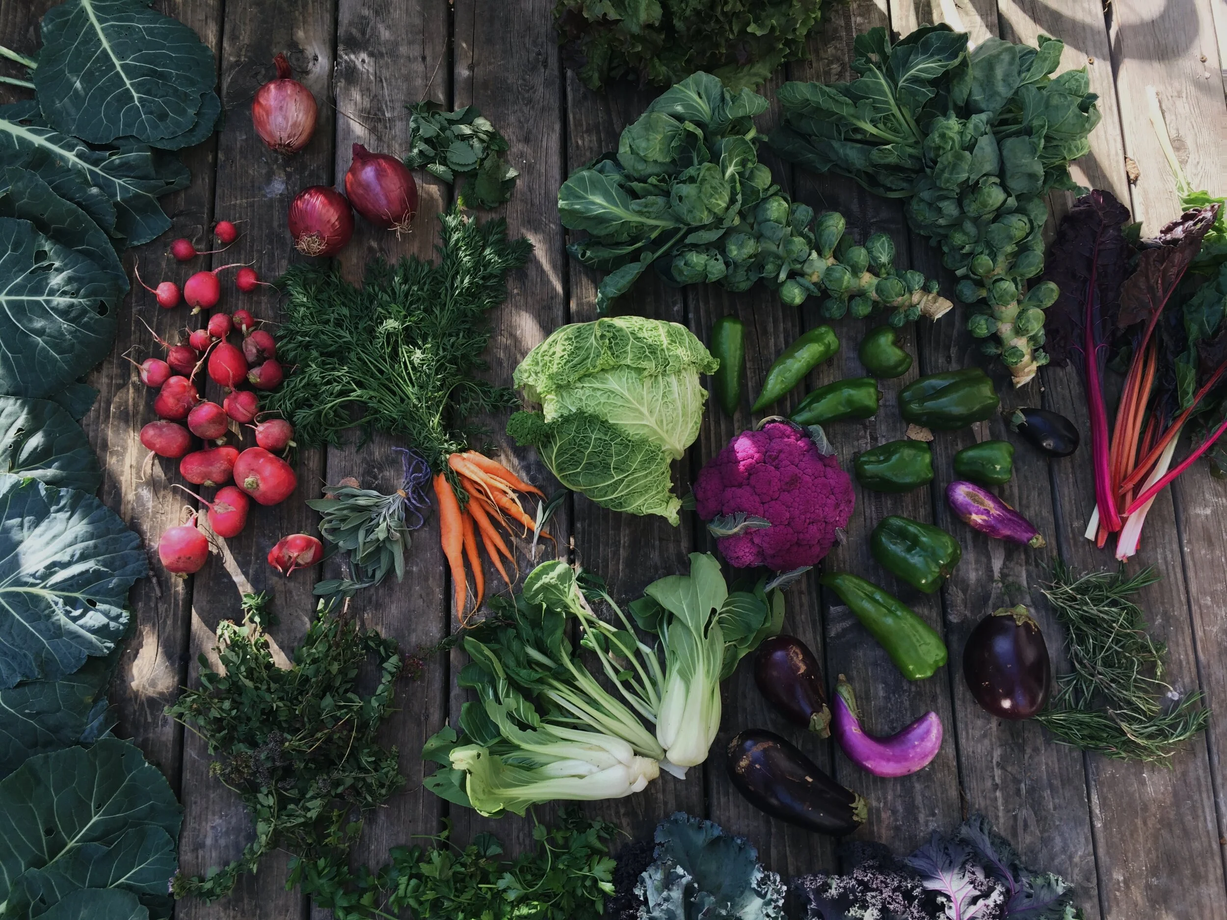 The fall share is made up of 4 deliveries over an 8 week period from the end of September until nearly Thanksgiving. Each share is large, and intended to last two weeks until the next delivery. In the beginning the fall share includes the end of the late summer crops like tomatoes and peppers, and then transitions into more traditional fall crops like frost-sweetened carrots, greens, broccoli, and brussels sprouts. You can expect a variety of storage crops like onions, potatoes, and winter squash.